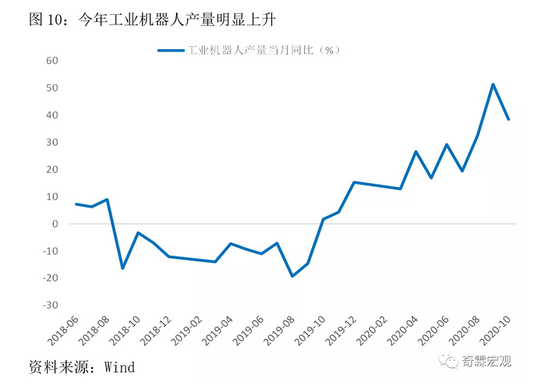 我们看到,今年工业机器人产量有不错表现,同比甚至一度高达50%以上。制造业大规模使用工业机器人本身就是企业技改加速的信号之一,而制造业企业技改会带来效率提升和单位生产成本下降,这对中国出口企业的长期竞争力有直接的好处。