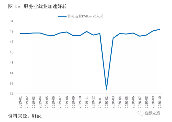 非制造业PMI的服务业就业分项显示,服务业就业开始加速回暖。就业一般是滞后指标,就业的好转确认已经意味着服务业的消费已经明显复苏了。