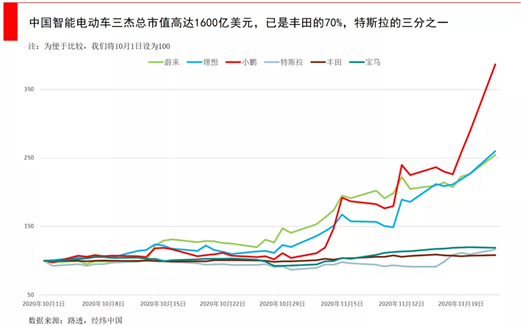 新能源汽车是今年资本市场最火的风口,特别是11月份,美股与A股的新能源汽车板块开启了“飙车”模式,特斯拉今年暴涨超500%、蔚来暴涨近1400%、小鹏超380%、理想近300%。