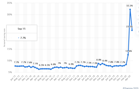 美国储蓄率上半年出现前所未有的飙升