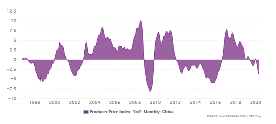 中国PPI次贷危机后常年为负(通缩)