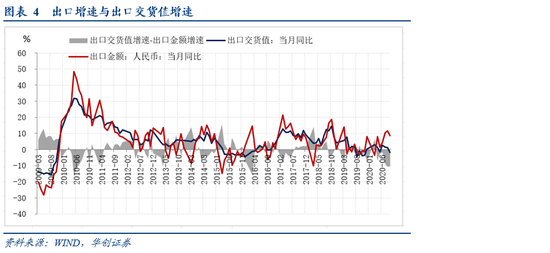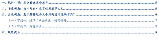 4)工业企业当期上报的出口交货值,可能由于交通、报关等因素,实际尚未出境,使得当期未纳入出口的统计中。或者反过来,当期统计的出口货物中,未必是当期生产的用于出口的,可能是上期生产的。