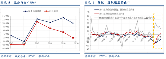 第二,纺织业。今年纺织相关产品可能是小企业出口增速更好。今年防疫物资(如口罩)出口增速较快,有可能这些防疫物资多数来自小企业生产。我们将出口交货值中纺织业;纺织服装、服饰业这两个行业的增速,以及出口金额中第十一类,纺织原料及纺织制品的增速予以比较。今年明显的特征是,出口中纺织相关产品增速大幅高于出口交货值中纺织相关产品。