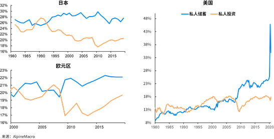 一方面储蓄越来越高,就压低了利率。但另一方面我们看到利率越来越低,政府的目的压低利率、降息是为了刺激大家去消费、刺激大家去投资,但是大家并没有做这件事情,有一部分投资,有一部分消费,但总体来讲存的钱依然是越来越多了。这次疫情过后储蓄大大增加了,而不是把它花出去、投资出去或者消费掉了。