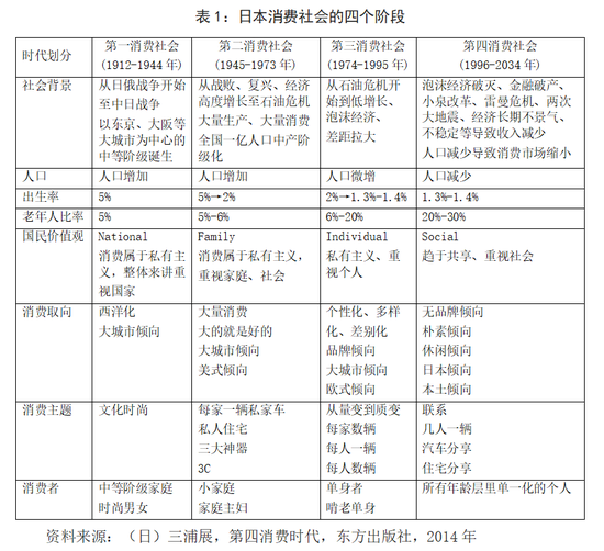 日本社会学家三浦展在《第四消费时代》中将日本消费社会划分为四个阶段。