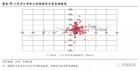 从汇率水平来看,“7.21”汇改至今,人民币对美元汇率和上证综指的相关性总体较弱。从汇率变动来看,在人民币汇率升/贬值幅度较大时,汇率和股价的相关性略有增强,历史上虽然出现多次“股汇双杀”,但性质不完全相同。从汇率预期来看,人民币升/贬值预期可能会在一定程度上通过影响外资流动进而影响股市走势,但要注意的是,人民币升值不等于有升值预期。
