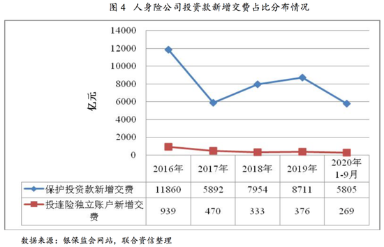 万能险及投连险业务规模有所收缩。由于万能险主要是高现价理财型产品,保障功能弱,在资本市场发展背景下,部分保险公司大力发展该类险种,导致负债端成本增加,投资端风险偏好上升,从而加大了投资风险和流动性风险。因此,银保监会持续加大了中短期理财型保险业务规范和限制,并出台一系列的监管政策。2017年,随着监管政策对保险公司的中短存续期产品和快返型产品监管约束趋严,保险公司寿险产品逐渐由理财型向保障型回归,万能险及投连险投资款在规模保费中占比大幅下滑,保障性保费收入占比明显提升,保险产品结构趋于稳健。2018—2019年,由于部分保险公司寿险业务保费收入快速下降,为保证收入规模的稳定性,其加大了万能险及投连险业务开展力度。2020年以来,万能险业务规模持续收缩,由于固收类投连险业务对资本占用规模较小,人身险公司加大了固收类投连险业务的拓展力度,投连险业务规模有所下降,但降幅低于万能险业务。2020年1—9月,保户投资款新增缴费和投连险独立账户新增缴费分别为5805亿元和269亿元,同比分别减少16.98%和8.50%。