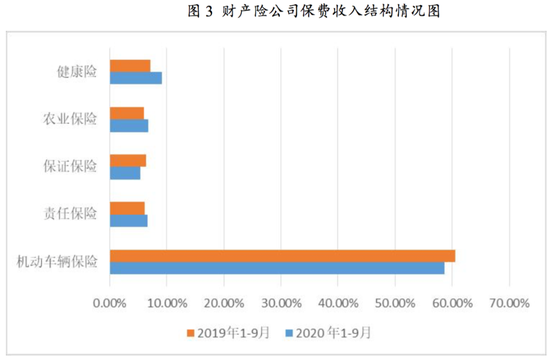 2020年1—9月,保费收入前10家的财产险公司市场份额占比较上年末略有提升,其中前3大财产险公司市场占比保持在64%左右,市场集中度仍较高(见表3)。