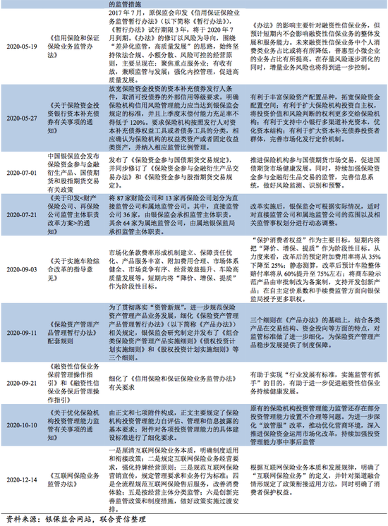 •监管方面不断细化保险业务分类监管,加大力度补齐制度短板,加强保险公司治理、资产负债管理业务渠道管理等方面的监管力度,同时通过对保险资管产品投向的细化细分,规范险企资金运用,更好的服务实体经济;
