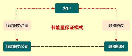 在保证节能量模式中,保证节能量模式是指实施节能项目的单位(客户)直接与第三方融资机构签署独立的融资合同,提供项目资金并承担财务风险, EMCo提供项目的全过程服务并保证节能效果。按合同规定,客户向EMCo支付服务费用。