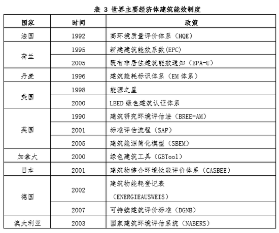 世界已有超过70个国家出台鼓励性或强制性公共建筑能效相关政策,通过法规或标准的形式对公共建筑从全生命周期角度做出最低能效要求。作为建筑能效管理的重要工具之一,世界主要经济体都已建立或筹备搭建透明完善的建筑能效标识制度,内容包括开展建筑能效审计、对建筑复位归准、建筑能效评级与认证以及建筑能效信息公示等。