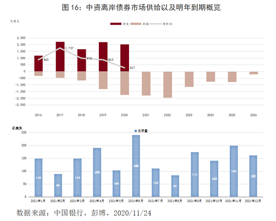 2020年,在新冠疫情逻辑主线的影响下,世界主要经济体均陷入了防御性政策宽松的混沌格局。随着抗疫概念逐渐常态化,疫苗何时有效推出、经济何时全面重启、供需如何重整修复、宽松如何有序退出,诸多变量因素在相互因果关系下形成了复合型矩阵,左右着资本市场风险情绪的起伏。同期美国总统大选的摇摆和财政刺激法案的拉锯无疑提升了市场波动性和敏感度,干扰着全球资金面对于未来预期共识的形成。离岸债券市场在这个特殊的宏观背景下,迎来了到期赎回的关键大年。虽然疫情爆发初期其笼罩在全球信用急剧收缩的阴霾下一度面临间歇性停滞,但随着美元和欧元流动性外溢的持续呵护,供需出现快速反弹并及时收复了失地,凸显出较好的韧性。