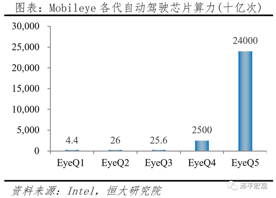 4)技术逐渐成熟:自动驾驶感知层的高精度地图、激光雷达、控制层的车载计算芯片等近几年都取得了很大的进展。以车载计算芯片为例,全球自动驾驶芯片龙头Mobileye分别在2008、2010、2014、2018、2020年发布EyeQ1、EyeQ2、EyeQ3、EyeQ4、EyeQ5五代芯片,其计算能力从2008年的4.4GOPS(十亿次)提升到24000GOPS,超五千多倍。