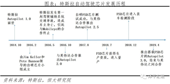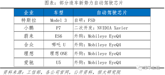 Mobileye的软硬件耦合方案不仅无法给车企提供原始感知数据,而且给予车企算法二次开发空间很小,不利于车企实现自动驾驶的差异化。从软硬件完全外购,到算法自研、芯片外购(如小鹏),再到算法自研、芯片自研(如特斯拉),可能是行业发展的必然趋势。以特斯拉为例,早期选用Mobileye的封闭方案,之后选择在英伟达芯片上进行二次开发,最终实现芯片自研。