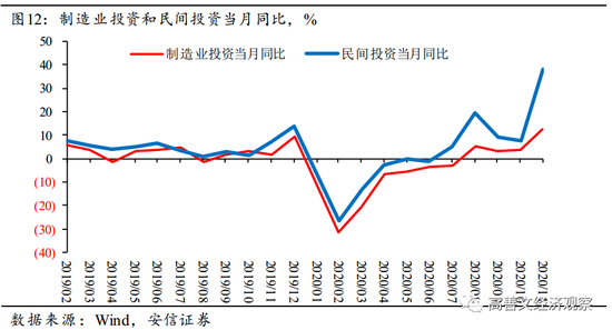 如图12所示,实物投资的明显加速主要发生在2020年8月份以后。