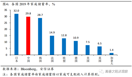 在2020年新冠疫情爆发的背景下,我们来观察中国以及在全球范围之内居民储蓄率的变化。