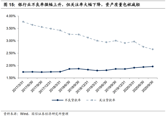 (2)2020年银行加大不良确认和处置力度后,背负的资产质量包袱减轻,相当于对资产质量进行了“大洗澡”。因此我们认为随着疫情影响减弱,银行不良生成率有望下降;
