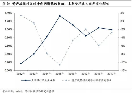 银行的资产减值损失绝大部分都是贷款减值损失,因此不良贷款情况决定了银行成本端的变化,其中关键变量是不良生成率。当不良生成率下降时,我们可以说资产质量对银行净利润增长产生了有利影响。