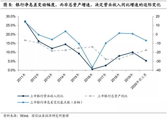 从对营业收入同比增速的影响程度来看,净息差变动幅度比总资产同比增速更重要。历史数据显示,银行营业收入增速的变动主要受净息差变动幅度驱动,而不是总资产增速驱动,因此在分析银行营业收入同比增速未来将上升还是下降时,我们仅关注银行净息差变动幅度即可。