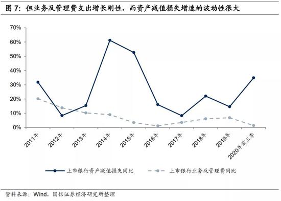 从成本构成来看,虽然业务及管理费、资产减值损失的占比都很大,但业务及管理费支出增长刚性,而资产减值损失同比增速波动性非常大,因此资产减值损失同比增速就更加重要。