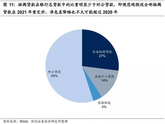 我们认为2021年银行净息差降幅有望收窄,对净利润增长的不利影响减弱。如前文所述,在净息差持续下降的情况下,只要降幅收窄,净息差就会对净利润增长产生有利影响。从上市银行数据来看,受LPR下调影响(主要是对公贷款),净息差在2020年前两个季度大幅下降,随着贷款重定价完成,2020年三季度银行净息差明显趋于稳定。虽然部分按揭贷款会在2021年元旦重定价,净息差仍将有所下降,但由于按揭贷款在银行总贷款中的比重明显少于对公贷款,因此即便按揭贷款重定价引起净息差下降,净息差的降幅也不太可能超过2020年。我们认为,净息差对净利润增长的不利影响在2021年有望减弱。