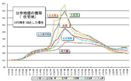 1975-2009年日本重要城市圈住宅地土地价格变化