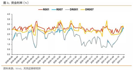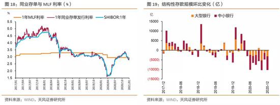 根据公开市场新闻 ,目前银行结构性存款的余额较为充足,结构性存款压降任务基本告一段落。受此影响,1月银行间流动性有所缓解,同业存单利率较去年年末明显下降,截至2021年1月21日,一年期同业存单参考收益率已经低于同期限MLF利率水平。这应该也是1月上半月市场流动性较为宽松的原因之一。