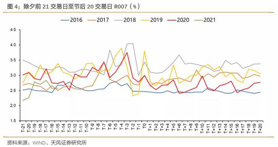 从净投放规模看,除疫情冲击下的2020年外,近年来央行为应对春节效应净投放的资金量基本稳定在1.67-1.85万亿左右。受疫情影响2020年净投放最高、分布也最集中,体现了货币政策的灵活性。2018年净投放分布最分散,但投放2018年春节净投放的资金链大致与2017年、2019年相仿。2017年与2019年净投放大致相仿,持续时间均为21天。