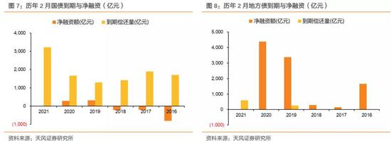 合计来看,我们预计今年2月政府债券发行规模约为7400亿元,净融资为-200亿元,均较去年同期有所下降,这为我们根据季节性特征估计2月财政存款规模的变动提供了依据。基于2月财政存款略少于往年春节同期的判断,我们判断今年2月财政存款规模减少约6000亿元。