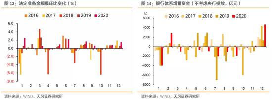 与货币发行类似,财政存款在年初也表现出季节性特征,即春节假期当月财政存款相对较低,下个月则有所反弹。2021年春节假期在2月中旬,参考2015、2018年的情况,1月财政存款环比相比其他年份明显增长,2月则相比其他年份明显减少。