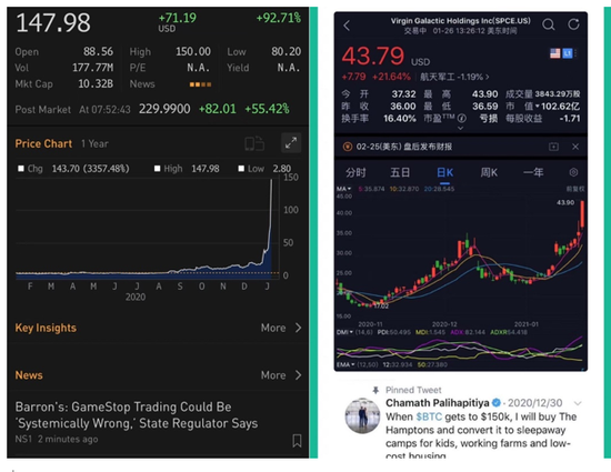 从WSB的组织形式来看,在现代互联网技术支持下,创建在Reddit或者国内的雪球这样的社群,很快能够聚集很大一批志同道合的人。而且一个帖子,只要逻辑过硬、分析透彻、论据确凿,就会产生一呼百应的结果。而且现在有了诸如Bloomberg或者Wind这样的数据提供商,普通散户只要愿意花功夫研究,无论是信息的获取速度,数据的整理方式,对投资标的的认知能力,并不弱于对冲基金分析师的。