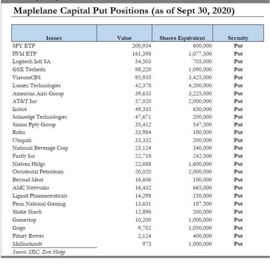 根据Maplelane Capital网站,该公司成立于2010年,专注于采用期权交易,积极参与做空投资。公司宣称:“本基金团队通过充分运用各种基本投资方法在所有市场领域进行股权投资,以寻求可观的回报。此外,虽然通常人们认为投资组合需要经常变动,但我们在一些领域会维持较长时间的投资。我们团队将代表客户大量使用杠杆。这些投资组合可能在股票市场上有大量的做空净敞口,尽管市场上主流的观点可能会对我们做空的标的看多。”