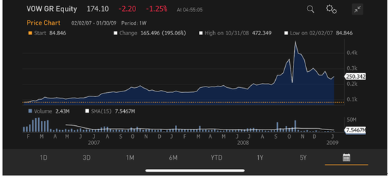 保时捷的VW 交易最后的结果,是监管要求停止交易,以最后的交易价结算。而且2008年Porsche的确要蛇吞象。
