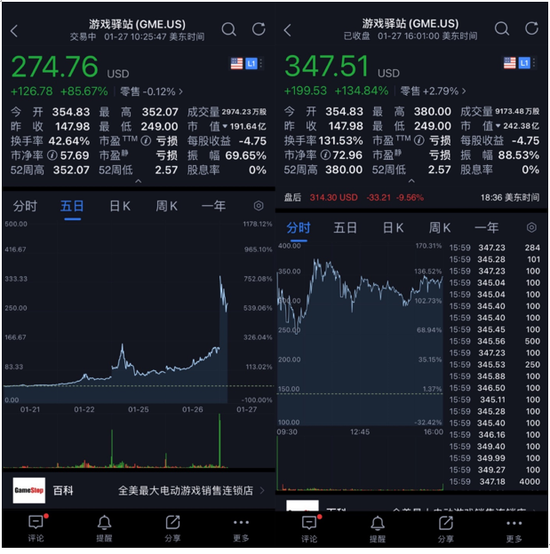 当天晚上收盘,因为散户逼空+ Short Cover,GME 股价再创新高347,估计那天交易时段,Plotkin同学砸彭博屏幕的心都有了。