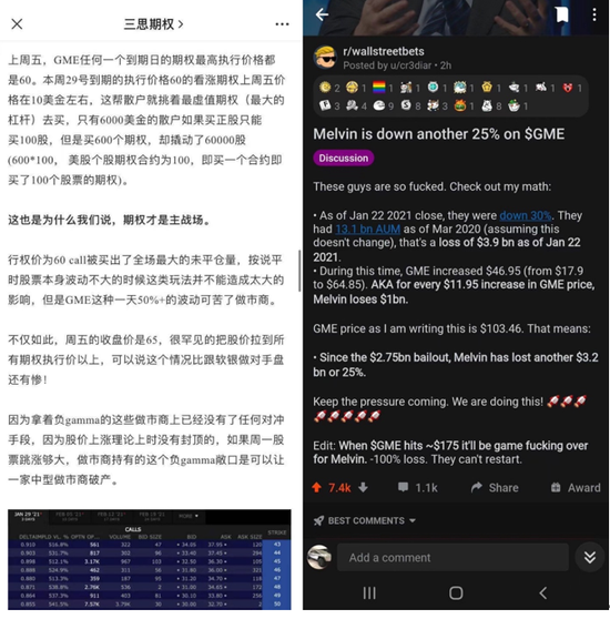 另外,想要快速了解期权的基本术语和含义,比如Delta和Gamma,可以参考网上有个“三思期权”作者的文章 —《软银是怎样用Gamma把市场玩坏的》。这篇文章解释了投资者如何利用期权的Gamma和逼空行情,不断推高标的股价,让持有有大量负Gamma的做市商,不得不一直购买股票来对冲,这就形成了一种股价正反馈,同时也让持有大量负Gamma的做市商在短时间内遭受巨额损失。而那些参与卖空标的股票和卖出看多期权的对冲基金,也需要买股票来对冲负gamma,加上本来很紧张的underlying liquidity,以及飙涨的借股费率,往往是雪上加霜,形成可怕的三连击。