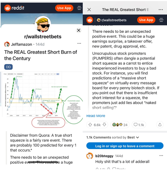 昨天,Reddit网站上Jeffamazon的网友,把这次的散户轧空叫做:The REAL Greatest Short Burn of the Century。他还专门声明:A true short squeeze is a fairly rare event. There are probably 100 predicted for every 1 that occurs. 多么自豪满满的标题啊❗️