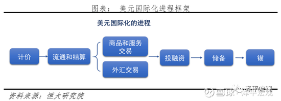 美元以计价功能为基础,衍生出贸易结算功能,逐步扩展到投融资功能,成为全球储备和货币之锚。