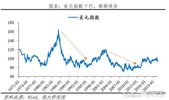 二是利用利率汇率手段,引导美元贬值,稀释各国外汇储备。美元贬值使美债持有国资产价值缩水,美国把国内经济调整的负担转嫁给债权国。在历史上,美国在危机时刻会通过对外输出通胀、美元贬值的办法,来降低国外美元持有者的实际购买力,进而稀释美国的对外负债。1985年美国与英、法、日和西德签署《广场协议》,引导美元贬值,加强美国产品对外竞争力,1985-1995年美元指数下跌30%。