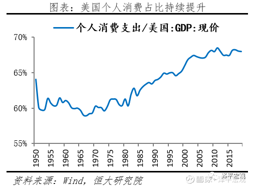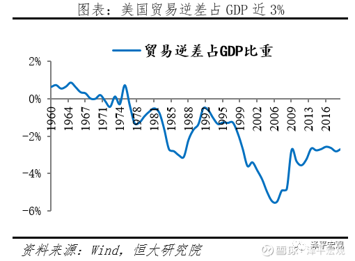 一是居民低储蓄、高消费盛行,贸易赤字成常态。1980年以来,宽松的货币环境和金融创新下,美国个人消费支出占GDP比重从60%快速升至68%,而居民储蓄率从11.4%降至7.5%,金融危机时一度降至3.6%。根据国民经济恒等式,Y=C+I+G+NX,Y-C=S=I+G+NX,低储蓄和高消费模式下,净出口NX必然持续为负,贸易赤字占GDP比重从0.68%扩大至2.7%。