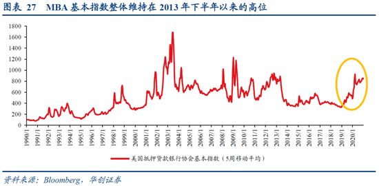 3)还有什么疑虑?居民收入还能持续增长吗,按揭利率上行会冲击房市吗?第一,居民收入今年将维持高增。去年是“按揭利率下+居民收入上”,二者“合力”利好房市。今年大概率是“按揭利率上+居民收入上”,二者“角力”。短期内(1年维度左右),相比于按揭利率上行带来的制约,居民收入维持高增对房市的“利好”力量更强。拜登1.9万亿财政刺激即将落地,或将推动居民收入继续维持高增,预计今年美国居民收入同比在6%-8%之间(2019年为3.9%,2020年为6.3%)。第二,按揭利率上行对房市的冲击有限。按揭利率上行可能会对房市形成一定制约,但今年按揭利率即便有所反弹,从绝对值看仍处于30年来最低水平,对有真实购房需求的居民来说仍十分具有吸引力。