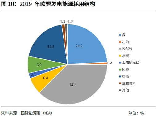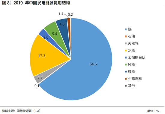 碳减排进程的加速,全球能源需求结构发生重大变更,传统化石能源需求预计很快会迎来峰值,可再生能源需求大幅提升。国际能源署(IEA)发布最新电力报告指出,虽然2020年受新冠肺炎疫情影响,全球电力市场需求明显下滑,但全球能源转型进程却呈加速之势,传统化石能源发电占比大幅缩减,可再生能源电力占比快速提升至近30%,成为全球最重要的电力来源之一。但从我国的发电能源耗用结构来看,目前我国发电仍主要以燃煤为主,清洁可再生能源占比不高;欧美发力则依赖天然气较多,风能、核能后来居上。为实现碳减排的目标,开展清洁能源开发、节能、电气化以及碳捕获技术成为各国未来主要关注的方向。