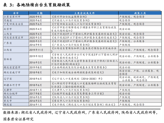 新冠疫情对人口出生造成负面冲击,但拖累效应或在3个百分点左右。新冠疫情2020年在全球爆发,对全球的生育意愿形成了明显的压制。我们认为主要有两个原因:1)医院人满为患,生育过程中感染风险增加,一些父母因此暂时搁置生育计划;2)部分家庭受疫情冲击严重,以至于不具备生育的物质条件。从下降幅度来看,中枢水平在3个百分点左右。其中中国台湾地区2020年出生率下降幅度较大达到了7%,但考虑到2012以来中国台湾出生人口每年减少约4%,2020年疫情影响预计也大约是3个百分点。中国受疫情冲击不算太大,但主要集中在2、3、4月。考虑到怀胎十月,疫情对中国2020年出生人口的影响预计也不会太小,我们认为中国新生儿受疫情拖累幅度和国际平均水平基本相当,或在3个百分点左右。