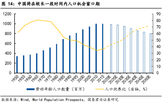 3)高消费率:长期看老龄化会打压收入增速并掣肘整体消费能力,但人口抚养比提升或将在中期提振消费率。