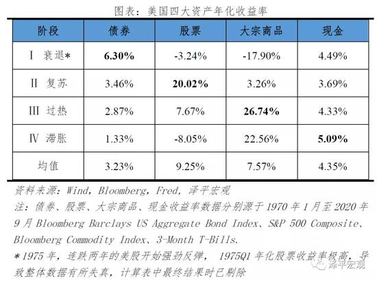 2.2 1970-2020年美林投资时钟下美国大类资产表现:基本符合经典理论