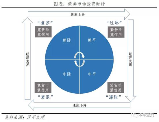 在滞胀期:经济下行,产出缺口恶化,通胀上行。由于通胀压力,此时货币政策难以放松,同时经济下行对企业盈利形成拖累,对股票造成负面影响,基于长期配置需求,债券的吸引力提升。现金>债券>大宗商品/股票。