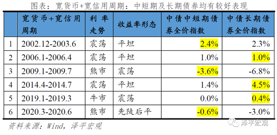 我们进一步选取中债中短期债券全价指数,及中债中长期债券全价指数,对比在不同货币与信用周期下,不同期限债券的收益率情况。数据测算显示,