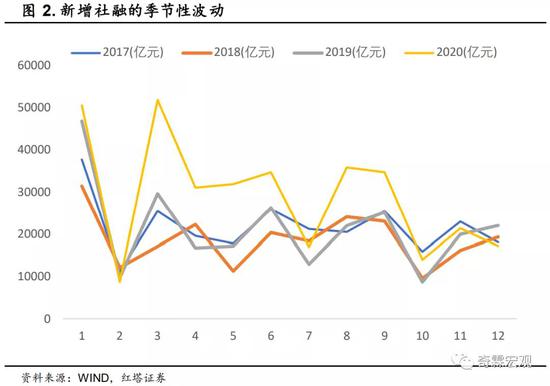 最明显的是,1月是新增社融最高的时候,几乎每年都如此。