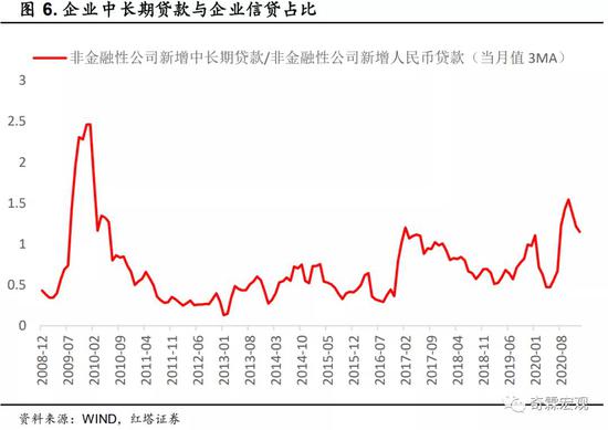 还有一次是2016年三季度到2017年年中,当时做了供给侧改革,部分制造业企业市场份额快速上升,份额快速上升之后,有了设备更新改造的需求,所以,当时企业中长期贷款与制造业设备更新的投资需求相匹配。