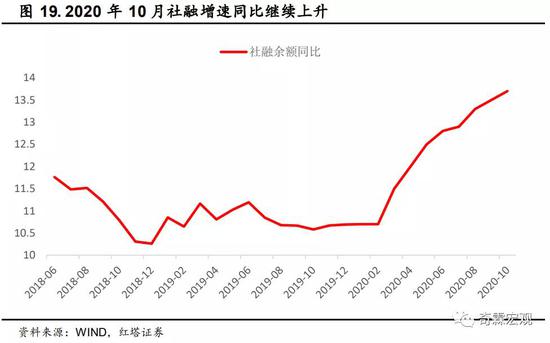 这个时候最好看同比,实际上存量社融同比增长13.7%,再度创下年内新高。因此,2020年10月新增社融的下降主要是季节性因素,还不太要紧,存量的同比增速目前还是稳定的。