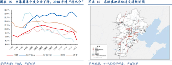 从三大城市群的发展趋势看:长三角“强者恒强”,GDP、消费在全国的比重始终在2成以上,财政收入占比不断创新高、已近3成,十四五规划纲要提出“提升长三角一体化发展水平”,重点瞄准国际先进科创能力和产业体系;珠三角金融危机后集中度下滑,消费、固投占比下降趋势较明显,十四五规划纲要提出“积极稳妥推进粤港澳大湾区建设”,重点加强粤港澳产学研协同发展和便利创新要素跨境流动;京津冀各项集中度全面下降,其中GDP、财政收入占比2018年因天津“挤水分”出现陡降,十四五规划纲要提出“加快推动京津冀协同发展”,重点在于疏解北京非首都功能,高标准高质量建设雄安新区等。